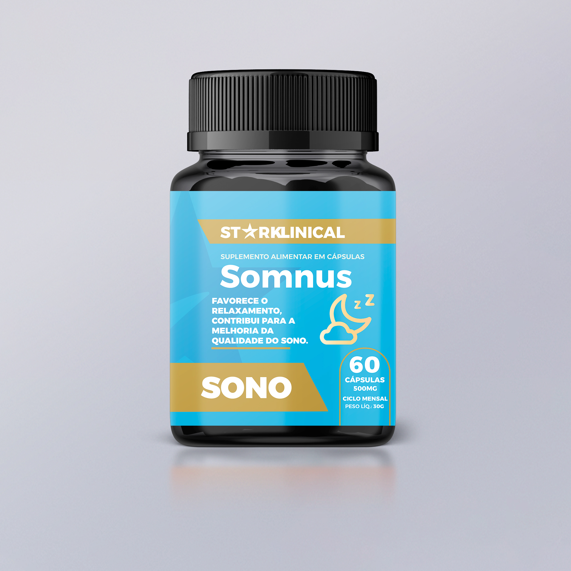 Suplemento para relaxamento e qualidade do sono, com melatonina, triptofano, magnésio e niacina.